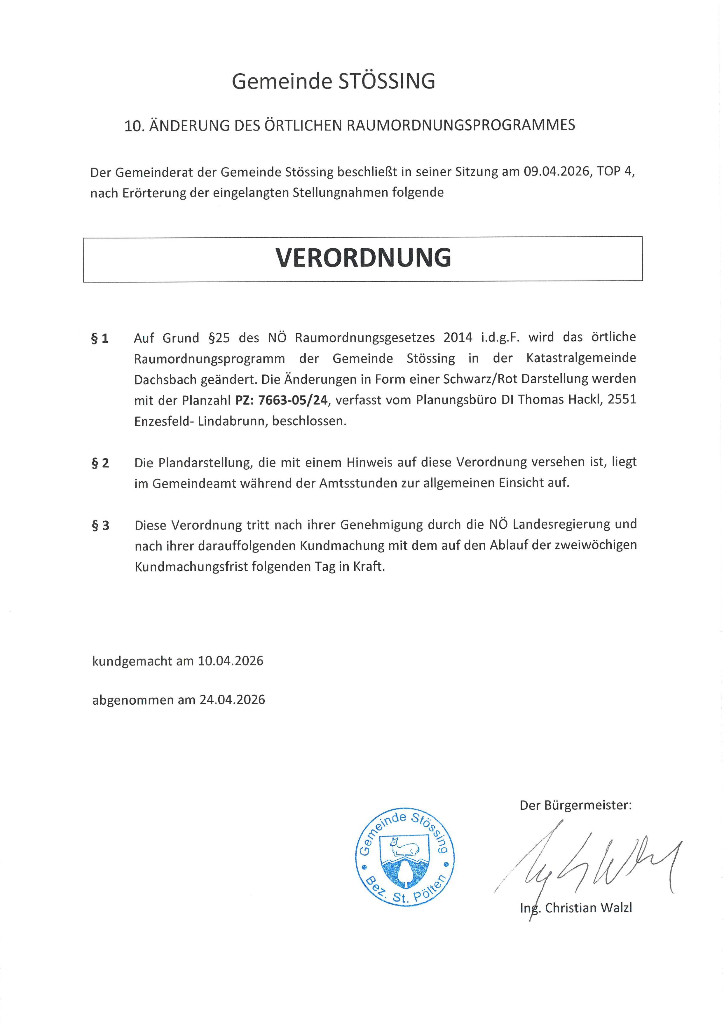 Änderung des örtlichen Raumordnungsplan