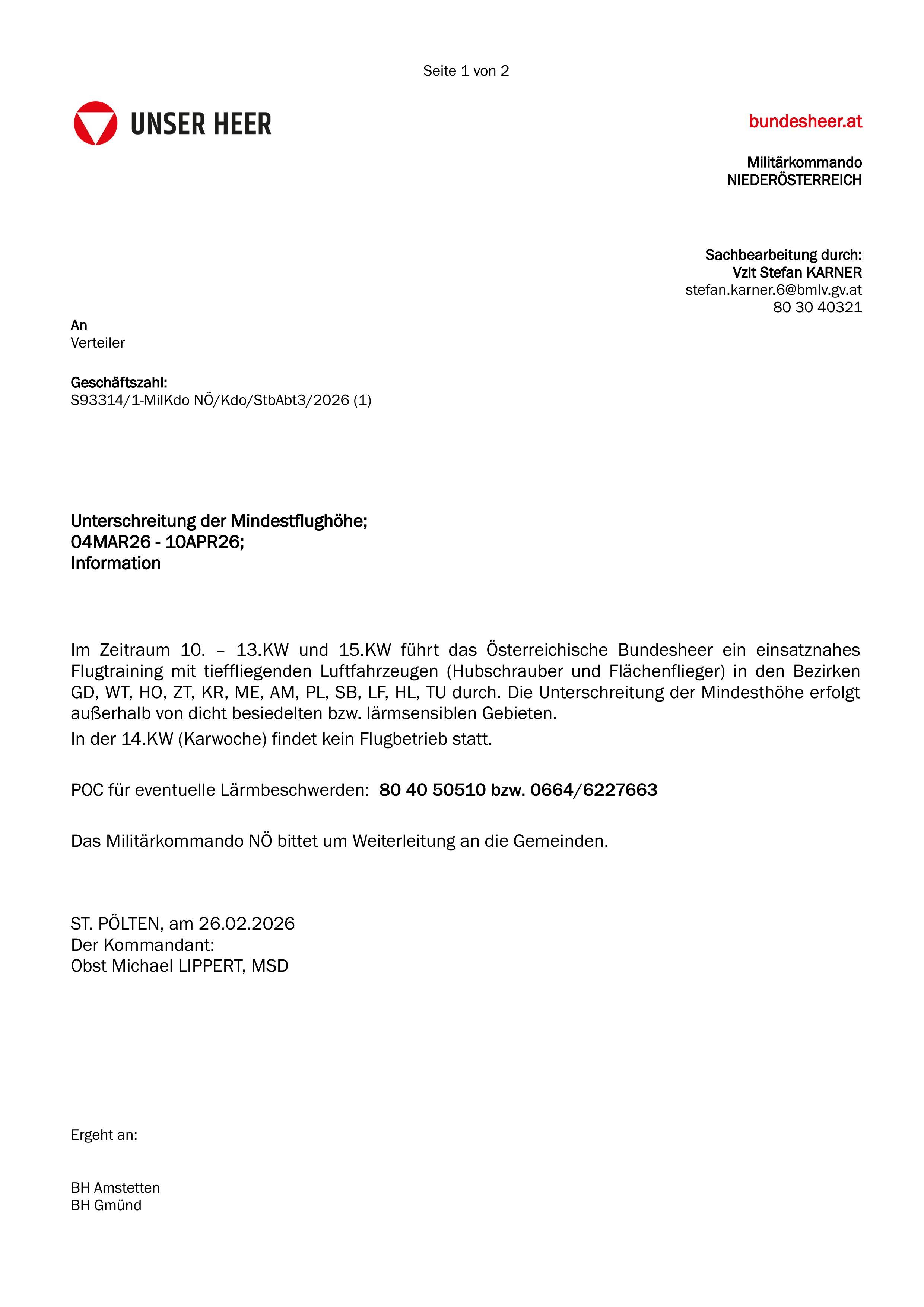 Stössingvor 12 StundenBundesheer informiert: Unterschreitung der Mindestflughöhe vom 04.März 2026 bis 10. April 2026BH NÖ 02-20262 Seiten
